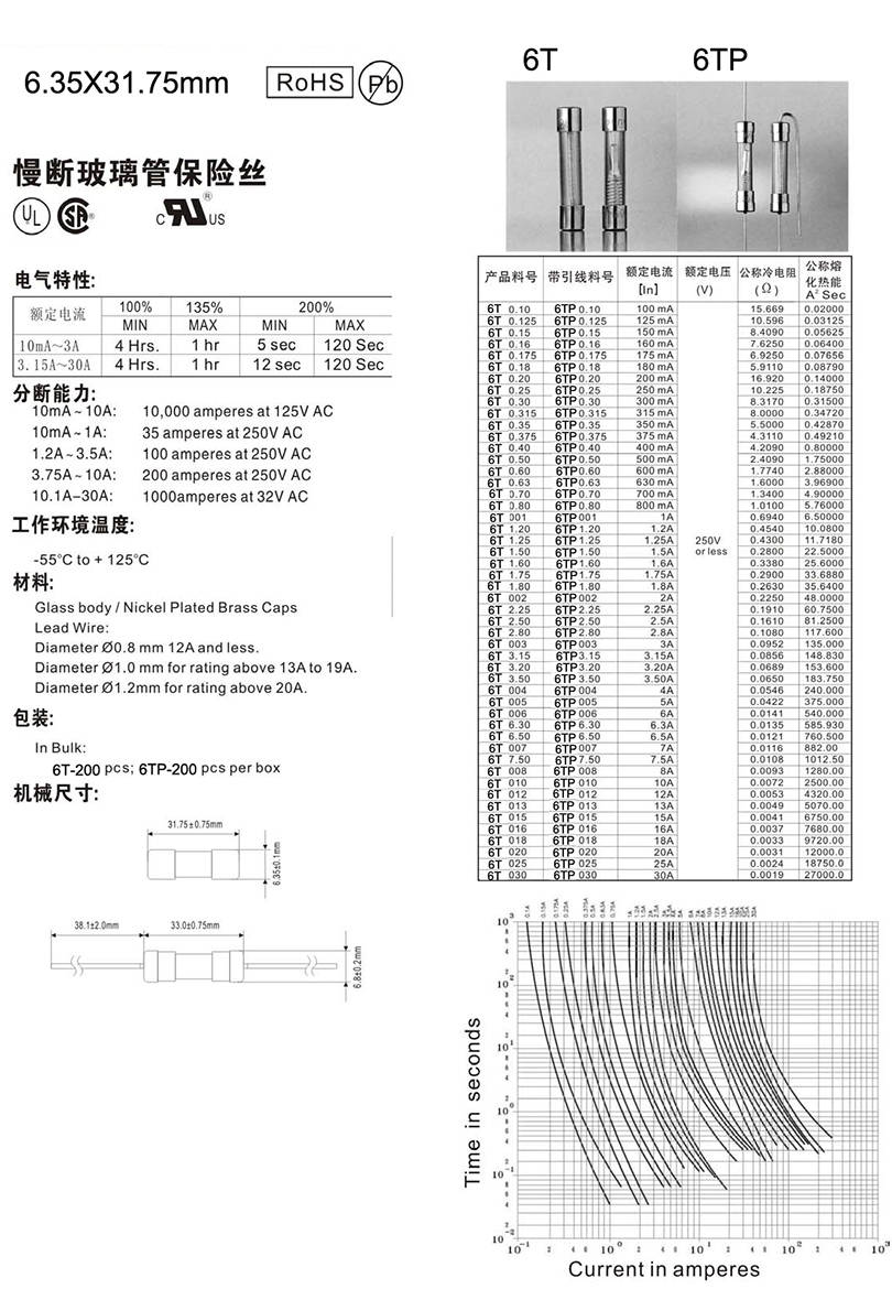 6.35X31.75mm慢斷玻璃管保險(xiǎn)絲