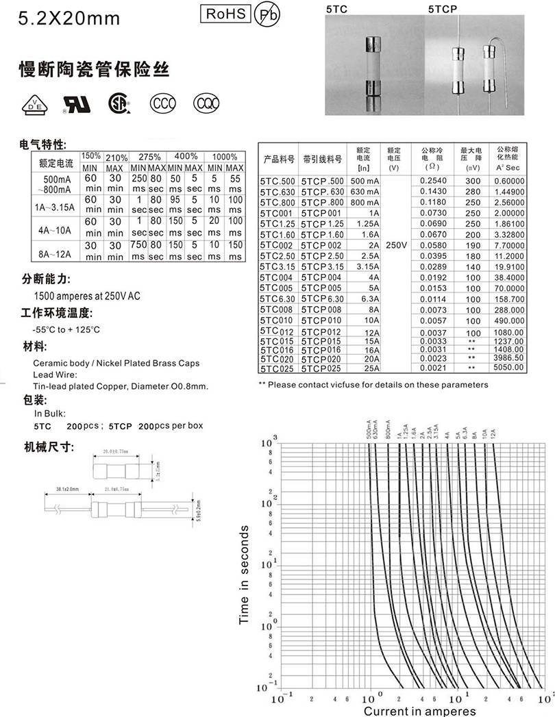 5.2x20mm陶瓷慢斷保險(xiǎn)絲